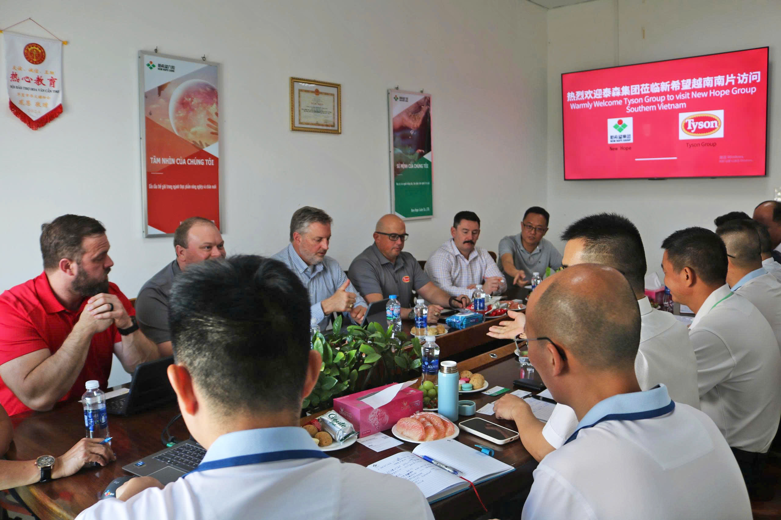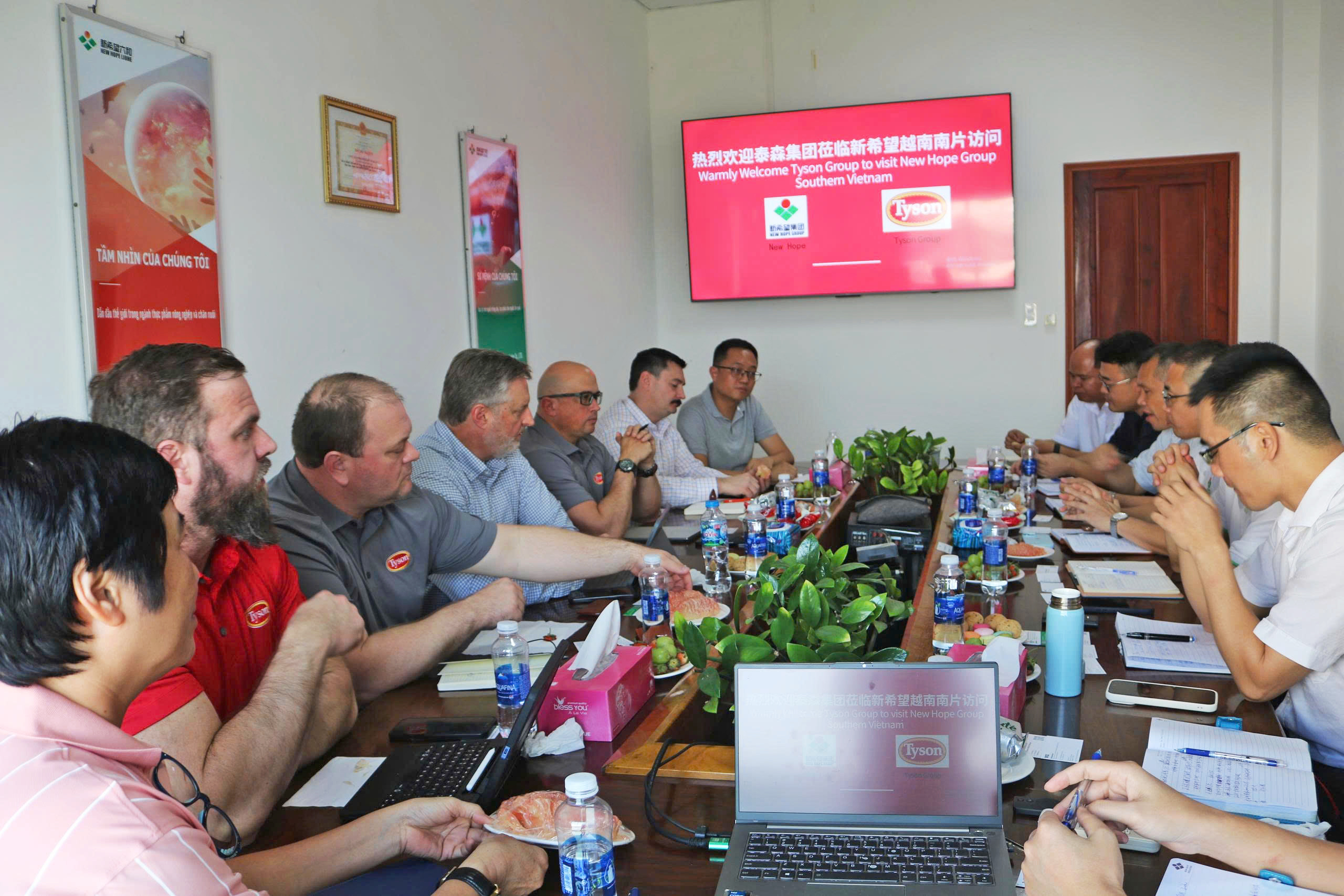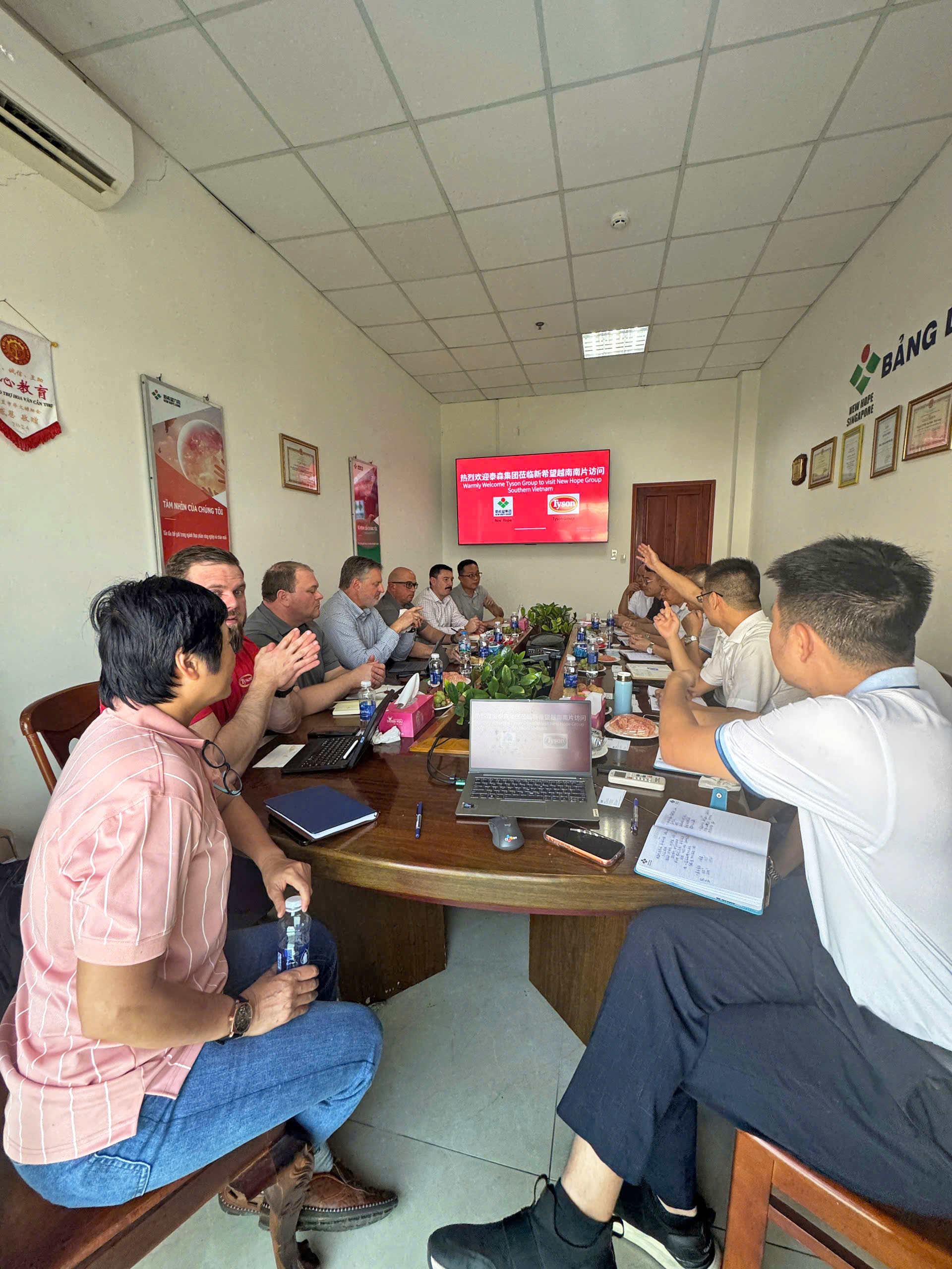 Ngày 17 tháng 3 năm 2026, đoàn lãnh đạo Tập đoàn Tyson đã đến thăm Công ty TNHH New Hope Vĩnh Long. Lãnh đạo khu vực và công ty đã nhiệt tình đón tiếp và cùng tham gia trao đổi. Hai bên đã tiến hành cuộc trao đổi thân thiện về việc tăng cường hợp tác trong tương lai, đồng thời thảo luận và trao đổi ý kiến xoay quanh định hướng phát triển chất lượng cao của ngành thức ăn thủy sản và ngành protein.